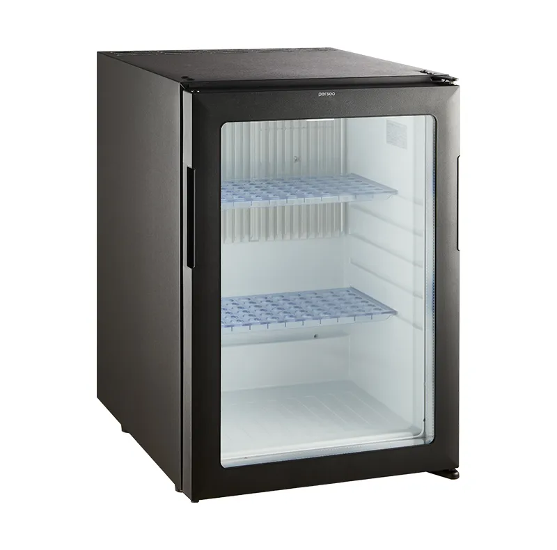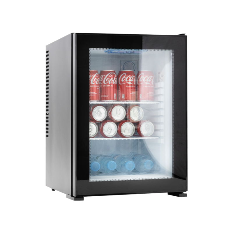 Minibar de refrigeración mediante un proceso químico que se realiza en el intercambiador de calor utilizando un refrigerante respetuoso con el medio ambiente y de alta eficiencia. Esta tecnología de refrigeración es completamente silenciosa (0 dB), sin ventiladores ni piezas móviles que generen ruidos o mantenimientos. Cabe destacar que esta tecnología de enfriamiento de minibares permite una mayor velocidad de enfriamiento sin incrementar considerablemente el consumo eléctrico.