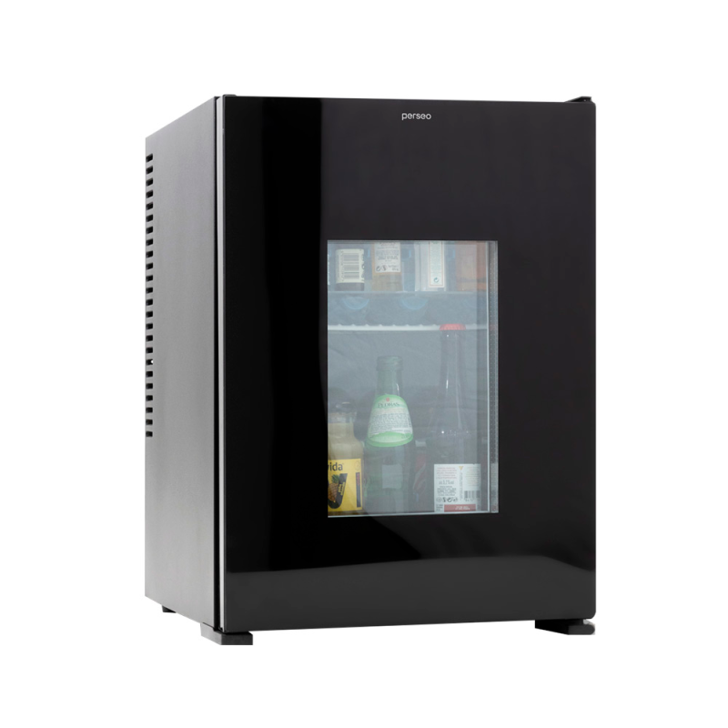 Frigorífico Minibar de refrigeración mediante un intercambiador de calor eléctrico completamente silencioso (0 dB) sin ventiladores ni piezas móviles que generen ruidos o mantenimientos. El sistema inteligente de control de temperatura del minibar se encarga de consumir sólo la potencia necesaria para mantener la temperatura interior deseada de la nevera minibar, lo cual se traduce en un significante ahorro energético para el hotel respecto a otras tecnología similares del mercado.
