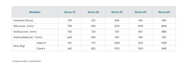 Elección de 5 tamaños que van desde 139 hasta 596 litros en dos grados de protección.
