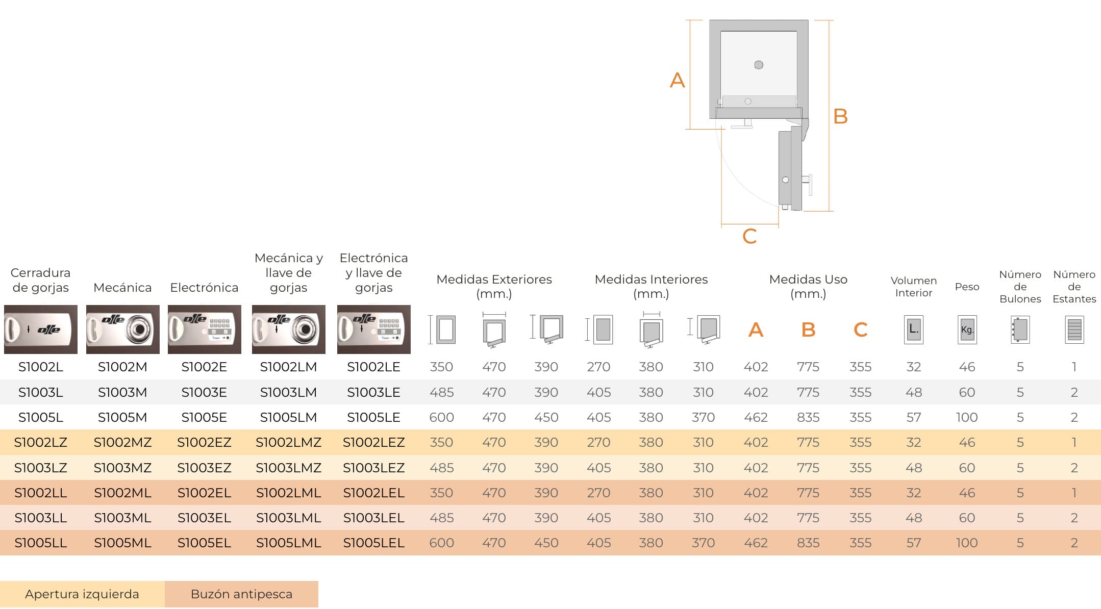 S1002LMLSOBREPONERCERRADURA DE LLAVE + COMBINACIÓN MECÁNICASINO350x470x390 mm El precio original era: 845,00 €.El precio actual es: 676,04 €.