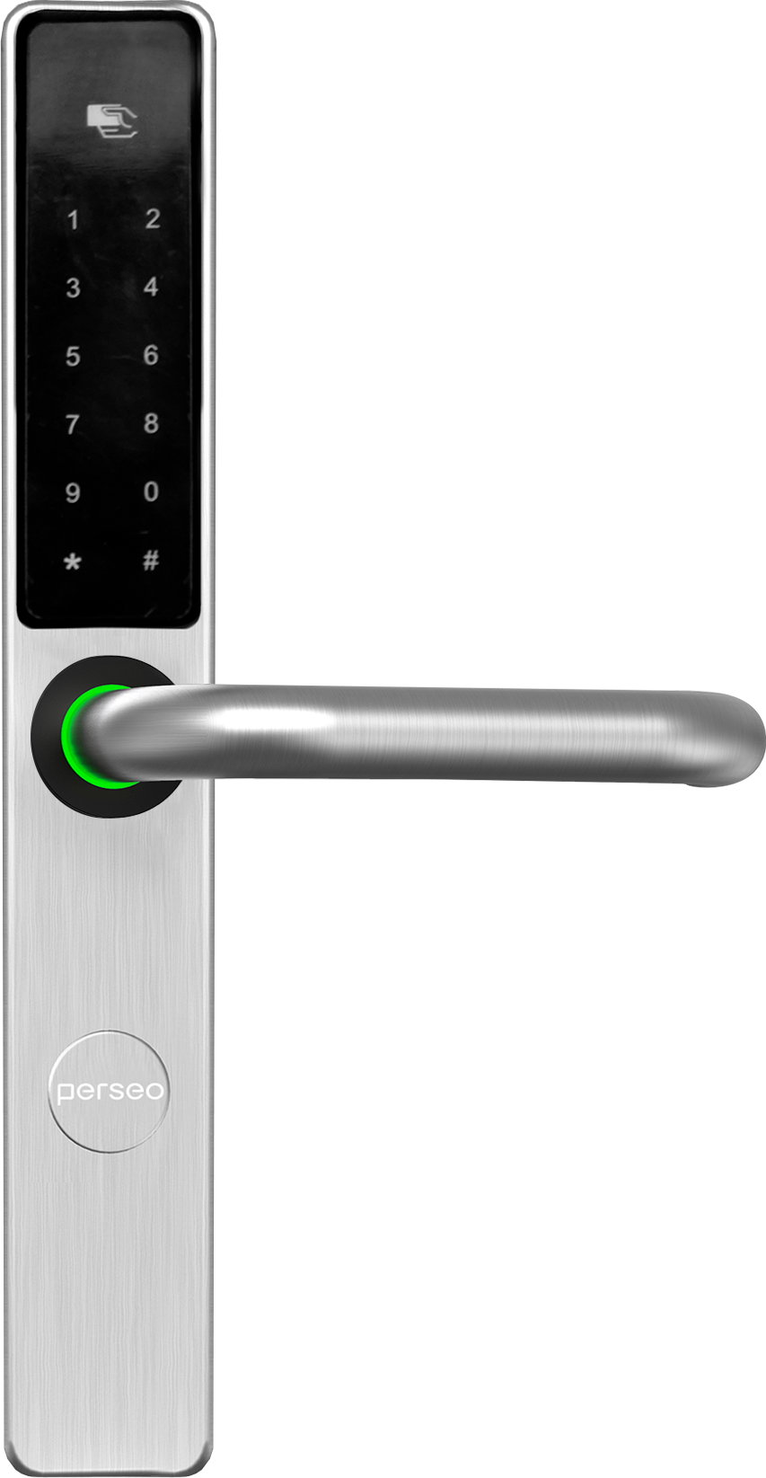 Cerradura electrónica con tecnología RFID, con cuerpo macizo y manetas fabricadas en acero inoxidable AISI304. Versión BASIC disponible para renovación de escudos únicamente, manteniendo el cerrojo antiguo. La cerradura Lux ofrece robustez y versatilidad con su tecnología