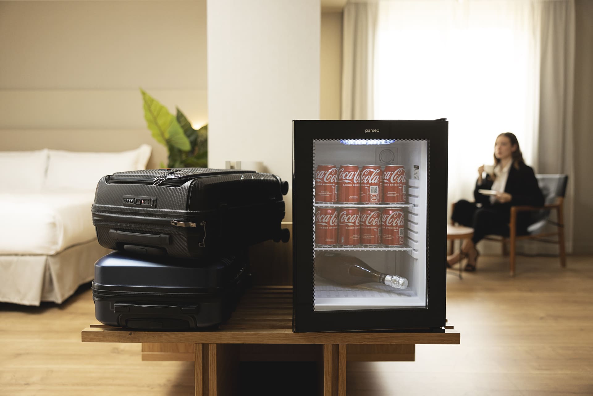 Porque destacan por su gran eficiencia energética, lo que se traduce en un gran ahorro para el hotel. Los minibares Winter están adaptados a la nueva normativa europea, vigente desde 2021. Esta serie de minibares es 100% silenciosa, ideales para los huéspedes más exigentes. Su diseño permite que los productos que contiene se encuentren siempre a la vista del huésped, invitándole a su consumo. Tecnología termoeléctrica: Frigorífico Minibar de refrigeración mediante un intercambiador de calor eléctrico completamente silencioso (0 dB) sin ventiladores ni piezas móviles que generen ruidos o mantenimientos. El sistema inteligente de control de temperatura del minibar se encarga de consumir sólo la potencia necesaria para mantener la temperatura interior deseada de la nevera minibar, lo cual se traduce en un significante ahorro energético para el hotel respecto a otras tecnologías similares del mercado.