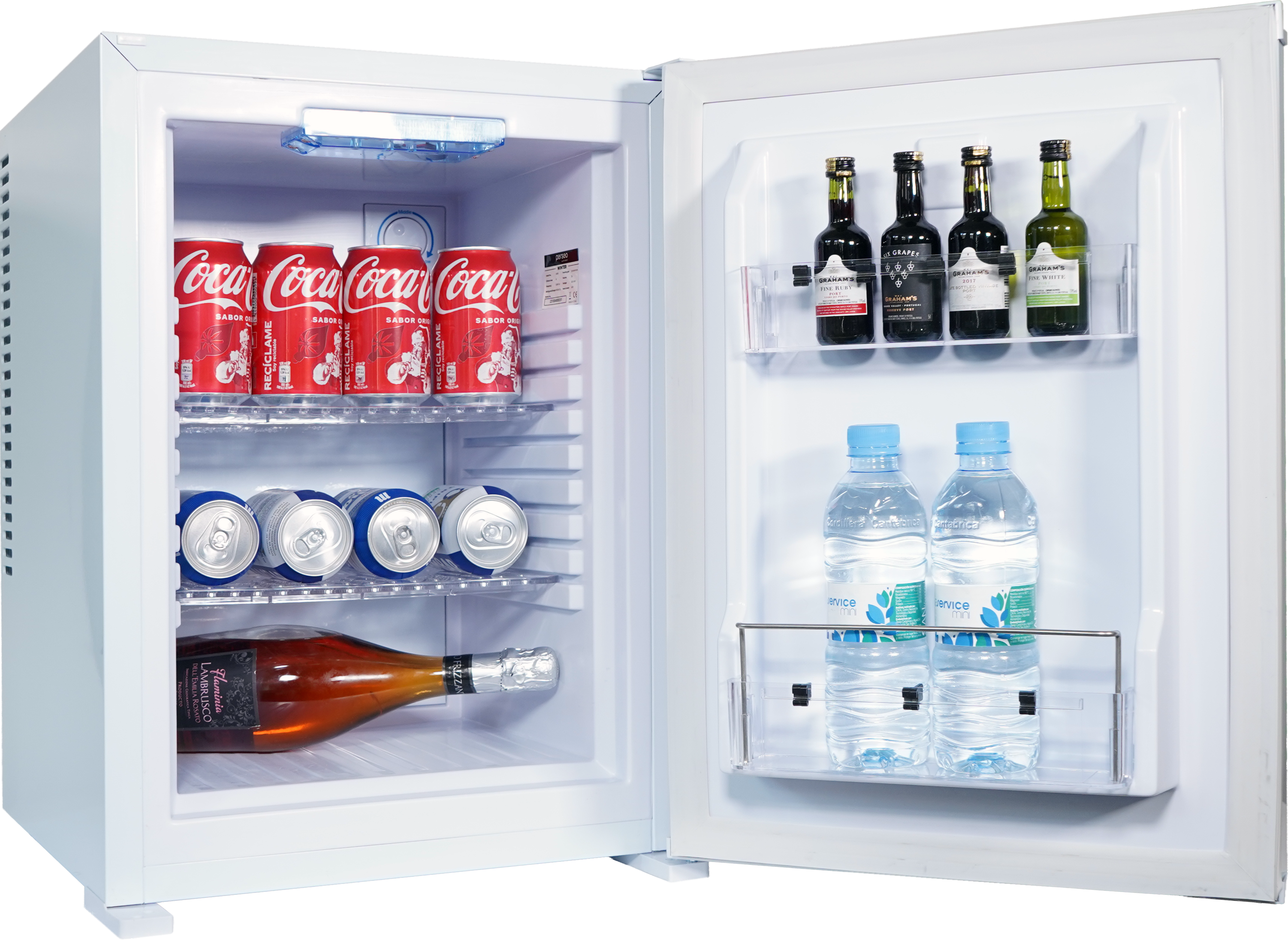 Esta serie de minibares es 100% silenciosa, ideales para los huéspedes más exigentes. Su diseño es muy elegante y tiene en cuenta todo tipo de detalles para satisfacer las necesidades del usuario: iluminación interior mediante LEDs de bajo consumo, bandejas regulables en altura y puerta reversible para aportarle más adaptabilidad al espacio disponible. Tecnología termoeléctrica: Frigorífico Minibar de refrigeración mediante un intercambiador de calor eléctrico completamente silencioso (0 dB) sin ventiladores ni piezas móviles que generen ruidos o mantenimientos. El sistema inteligente de control de temperatura del minibar se encarga de consumir sólo la potencia necesaria para mantener la temperatura interior deseada de la nevera minibar, lo cual se traduce en un significante ahorro energético para el hotel respecto a otras tecnologías similares del mercado.