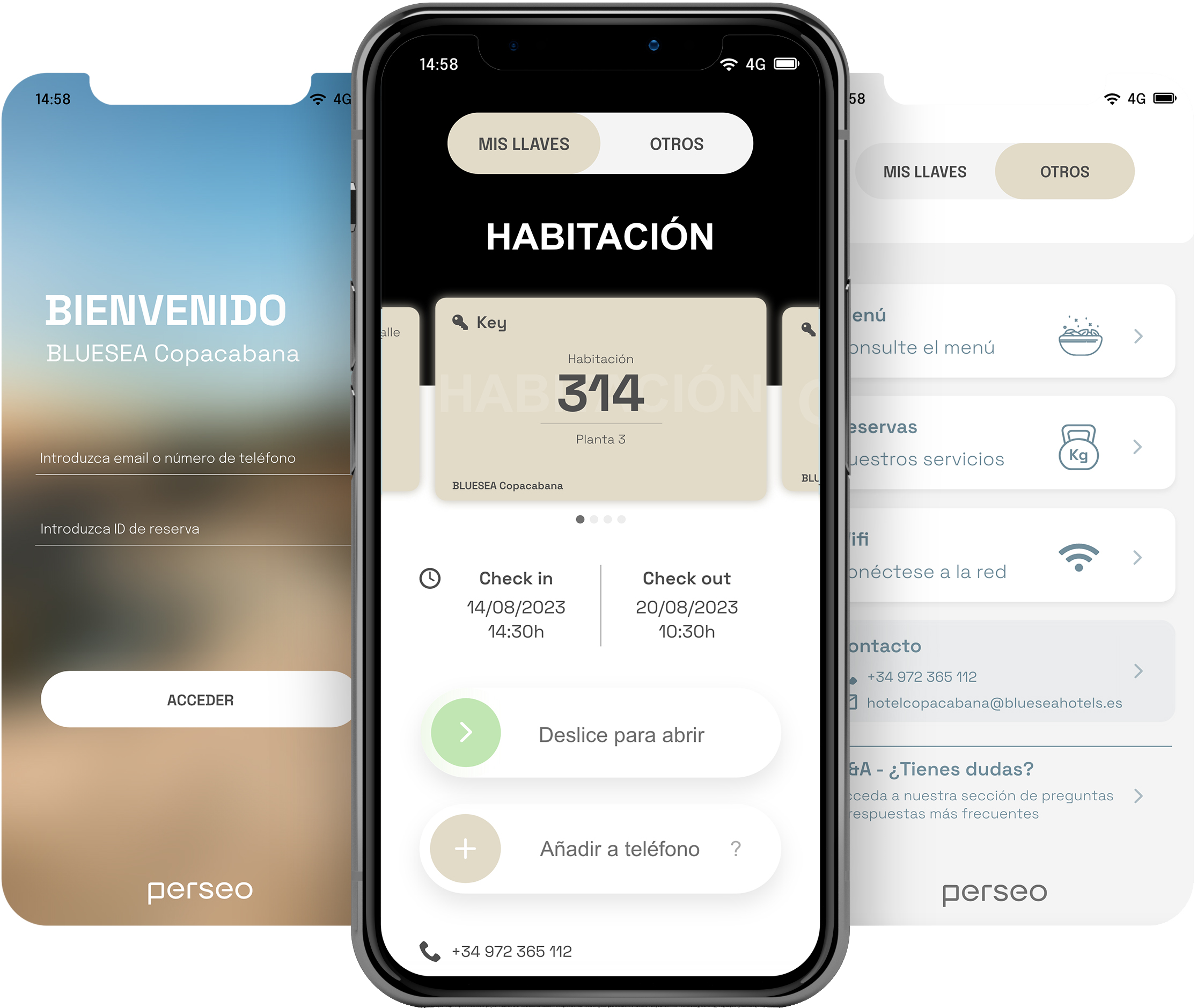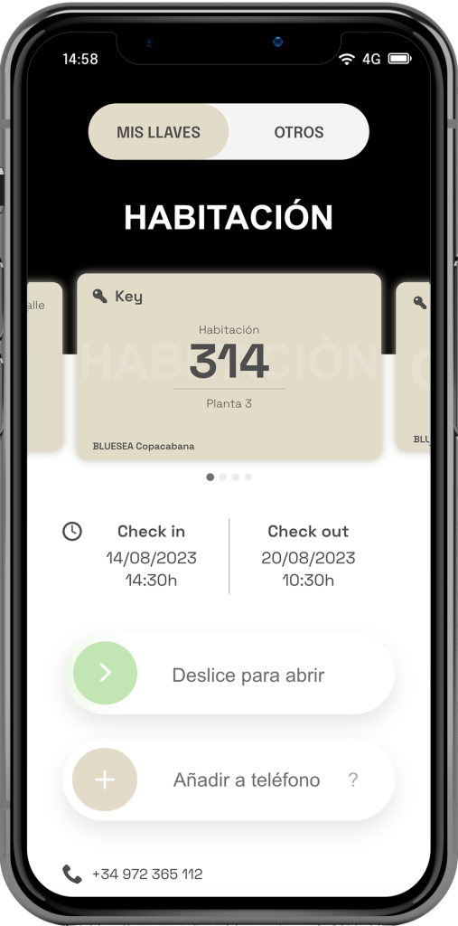 Opciones de acceso: llave mecánica, tarjeta RFID, móvil, clave numérica y otros.
