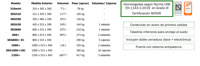 | SEG1000+LE - 26 ARMAS | SOBREPONER | CERRADURA DE LLAVE + TECLADO ELECTRÓNICO | GRADO III AENOR | 1000X515x450 mm | 2.399,00 € |